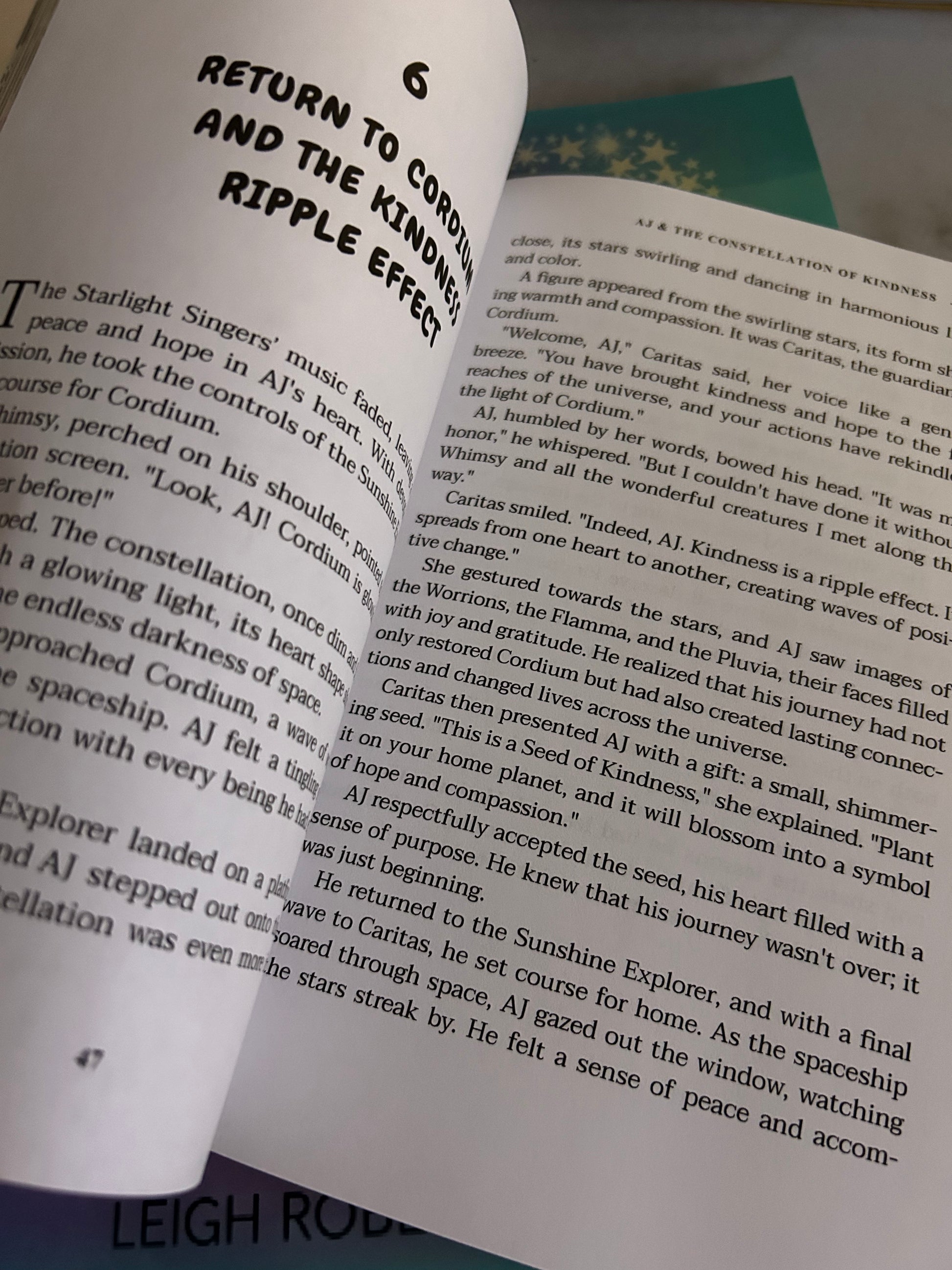 AJ and the Constellation of Kindness is a story about friendship, self-discovery, and the power of kindness to transform hearts and rekindle the stars.