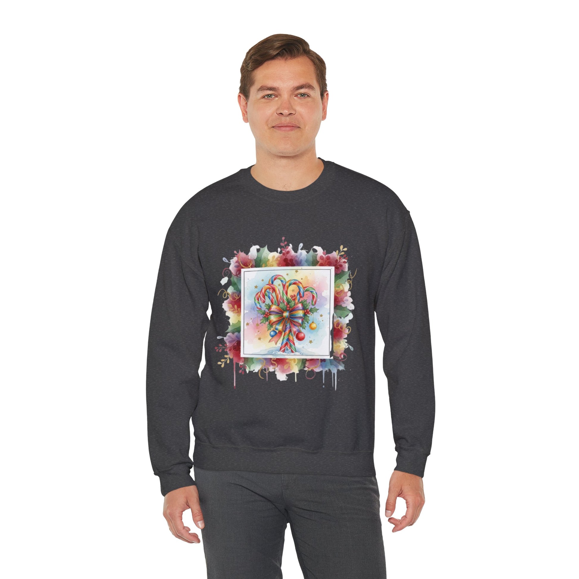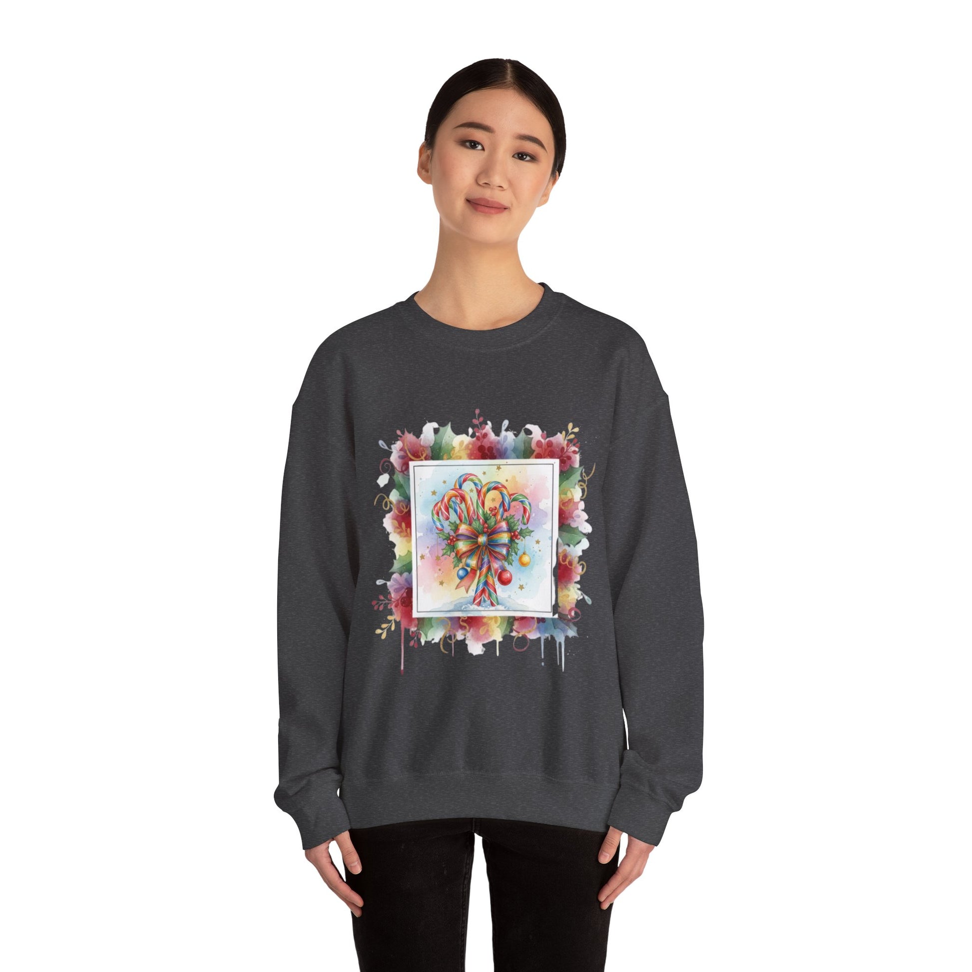 Introducing our cozy Crewneck Sweatshirt, perfect for the holiday season and beyond! The vibrant design features colorful candy canes and festive ornaments, bringing cheerful vibes to your wardrobe. This sweatshirt effortlessly combines comfort and style, making it an ideal choice for winter gatherings, cozy nights in, or casual outings. It's perfect for anyone looking to express their holiday spirit and embrace the warmth of the season. Targeted toward adults who enjoy stylish loungewear or wish to spread cheerful décor vibes during celebrations, this sweatshirt is a delightful gift option for friends and family during Christmas, New Year, and holiday parties. Stylish and snug, it invites you to celebrate the joyous moments in life!