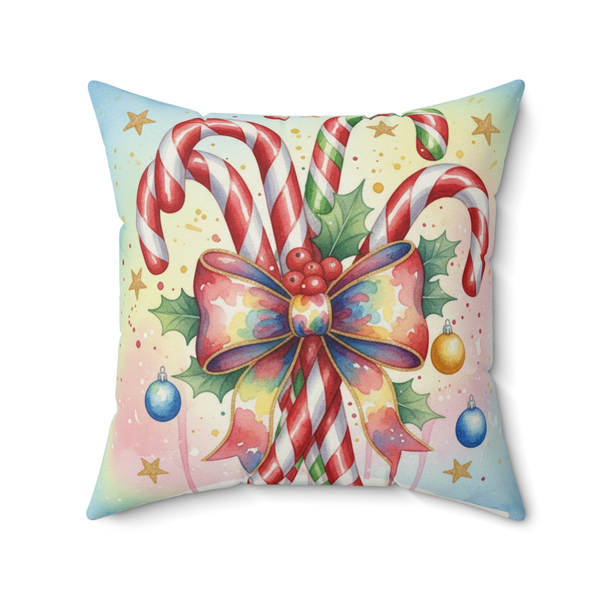 Add a touch of festive cheer to your home with this charming square pillow. Perfect for the holiday season, its delightful design featuring candy canes and ornaments captures the warmth of celebrations like Christmas and New Year's. This pillow enhances cozy spaces, providing comfort and a seasonal accent to any decor. Ideal for families, friends, and anyone looking to spread joy during gatherings and festivities. It’s a versatile piece that fits beautifully in living rooms, bedrooms, or as a lovely gift for loved ones during the holidays.