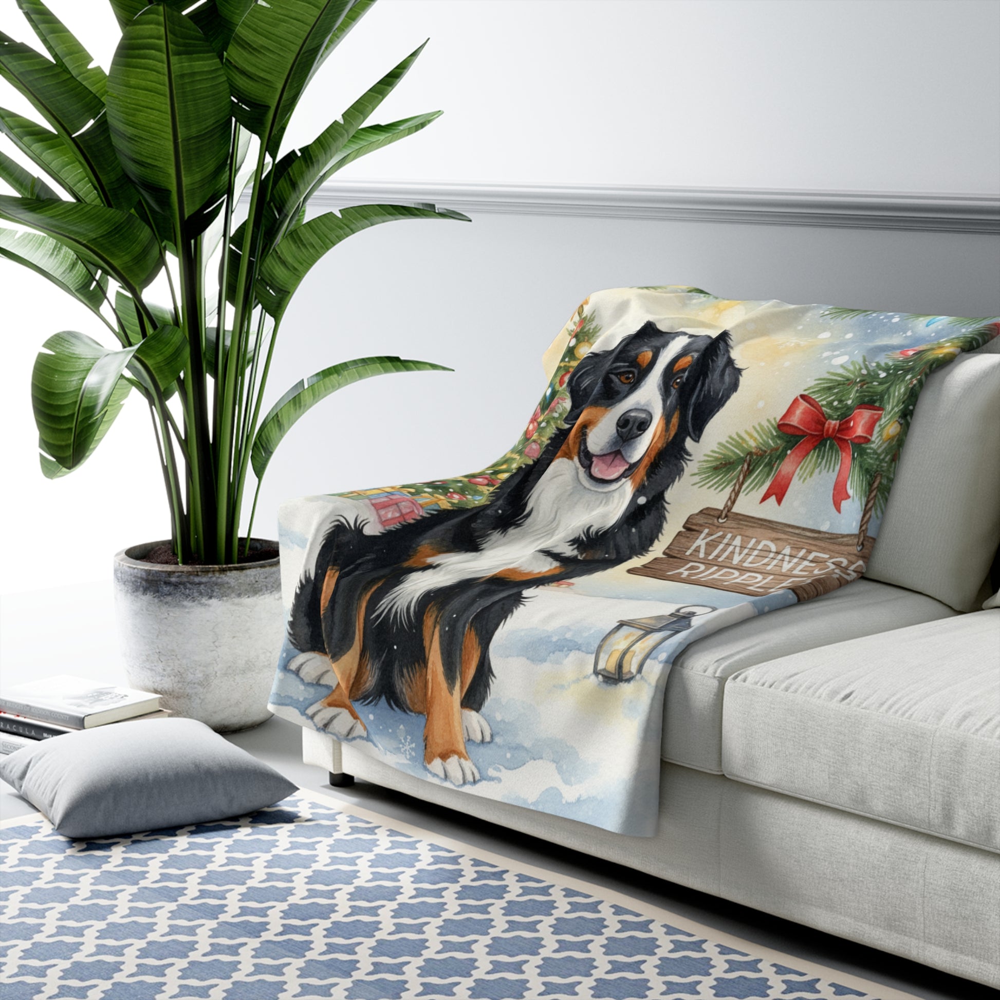 Christmas Gentle Bernese Mountain Dog Sherpa Blanket — 'Kindness Ripples' Holiday Throw