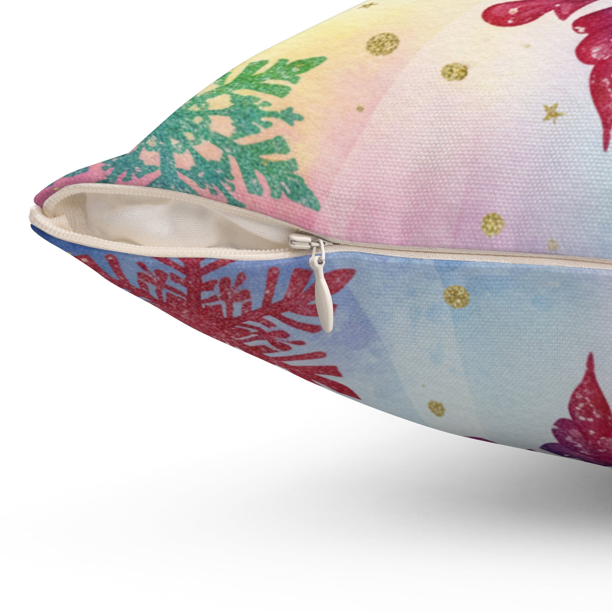 Elevate your home decor with this vibrant Spun Polyester Square Pillow that radiates warmth and positivity. Featuring a beautiful double-sided print of colorful snowflakes and the uplifting message "Kindness Ripples," this pillow adds a cheerful touch to any space. Cozy up on your couch or bed and enjoy the inviting atmosphere it brings. Perfect for seasonal celebrations, winter holidays, or simply as a daily reminder to spread kindness, this pillow appeals to those who love unique, expressive home accessories. Ideal for gifting during the festive season, housewarming parties, or just to brighten someone's day!