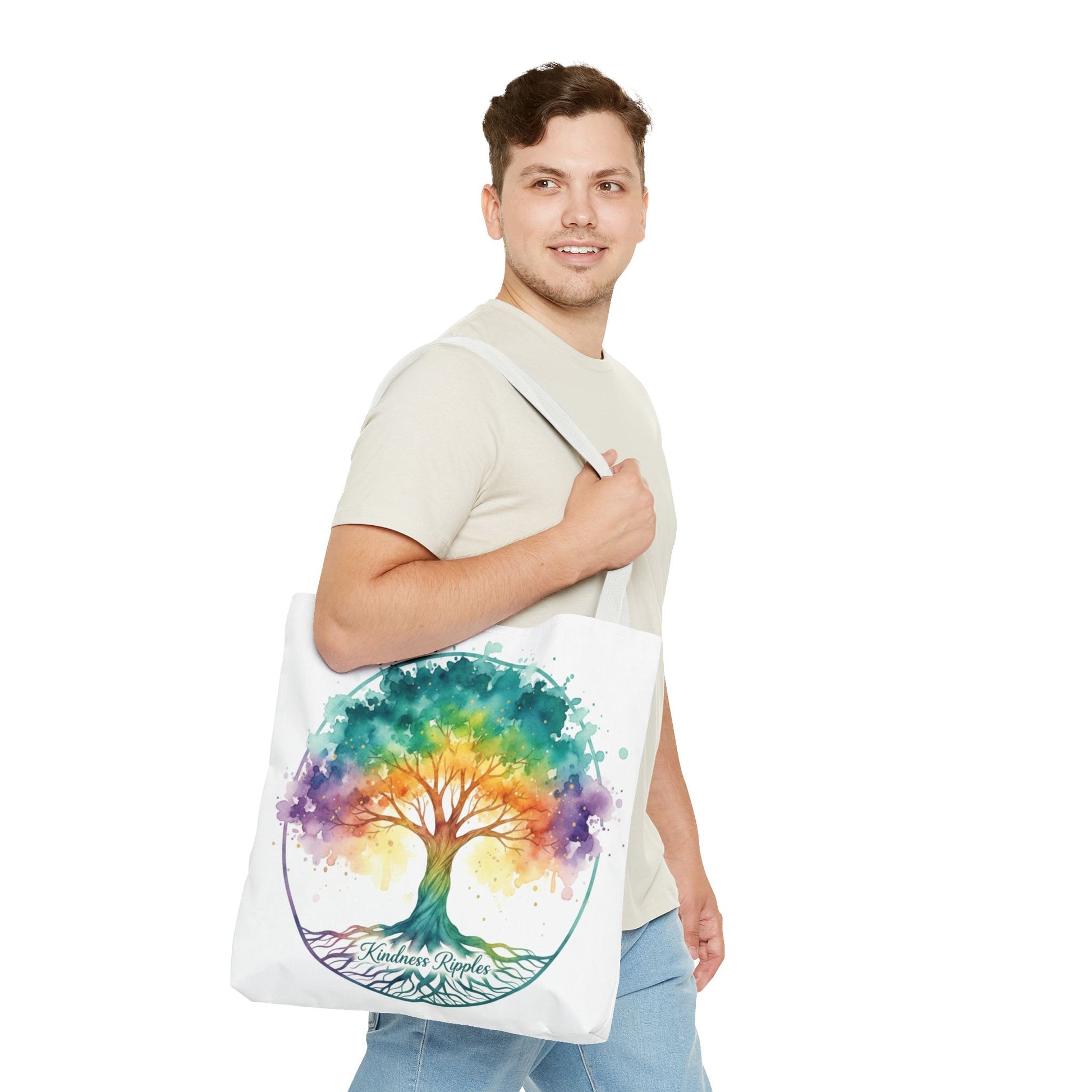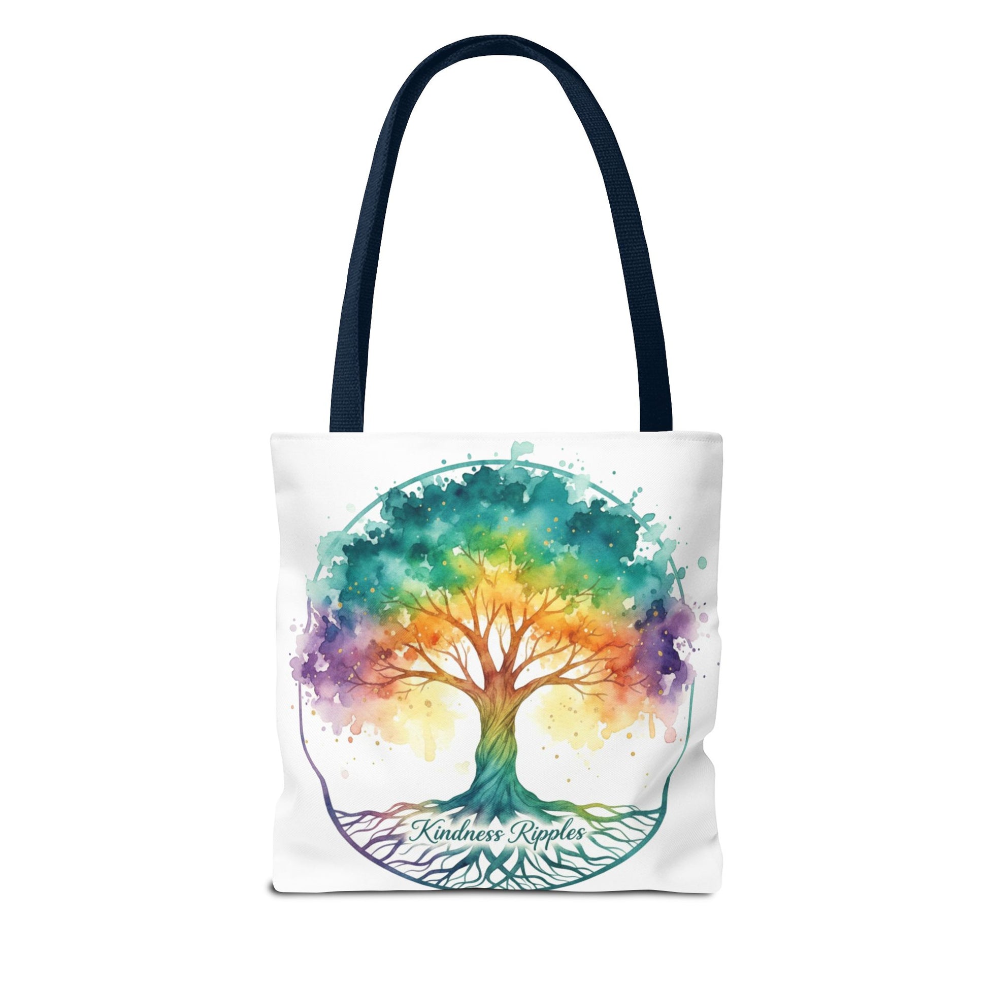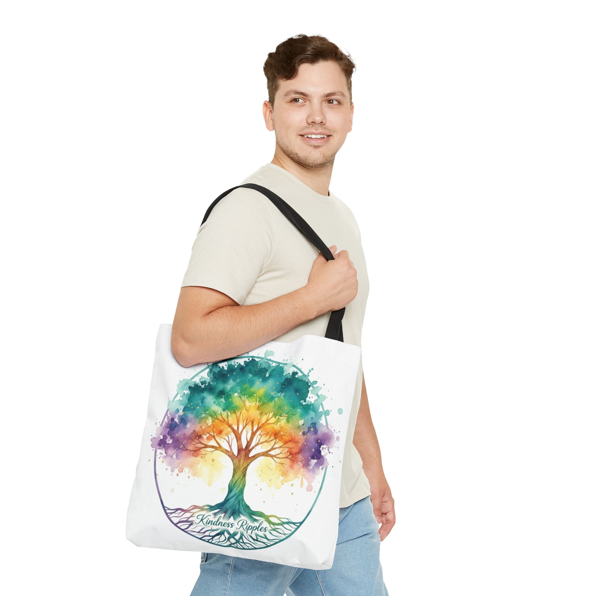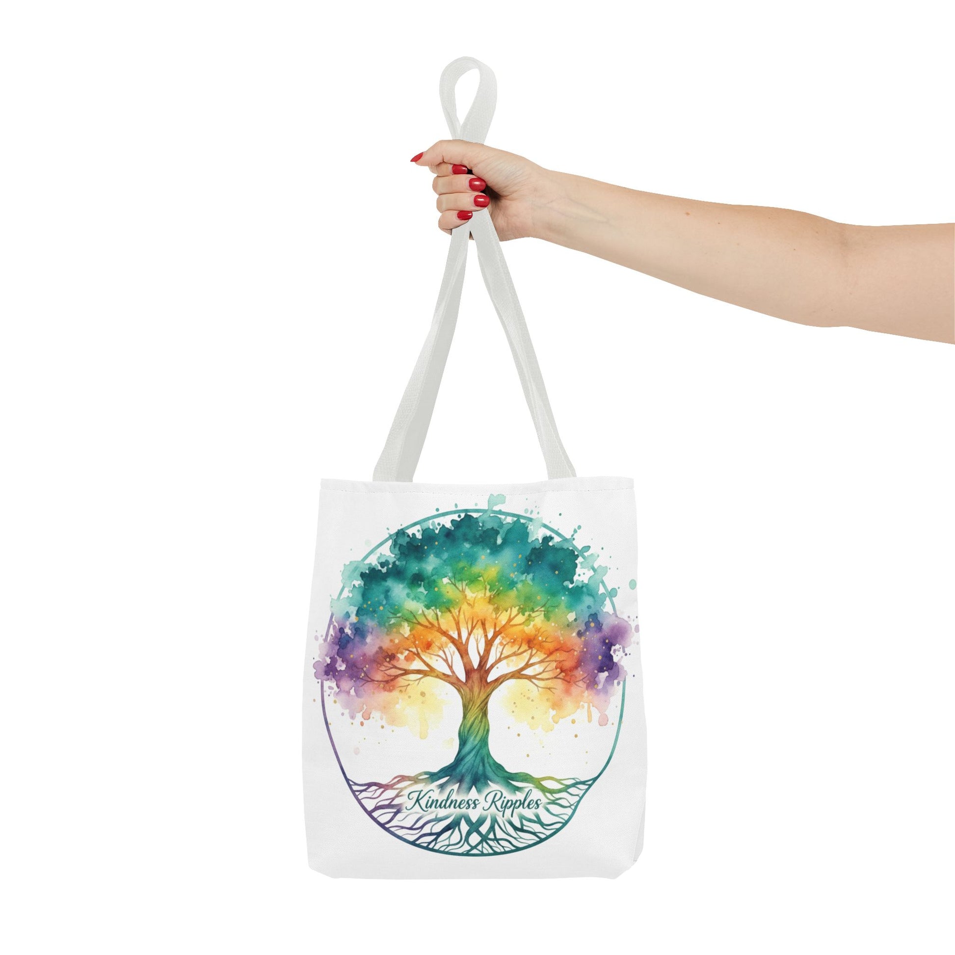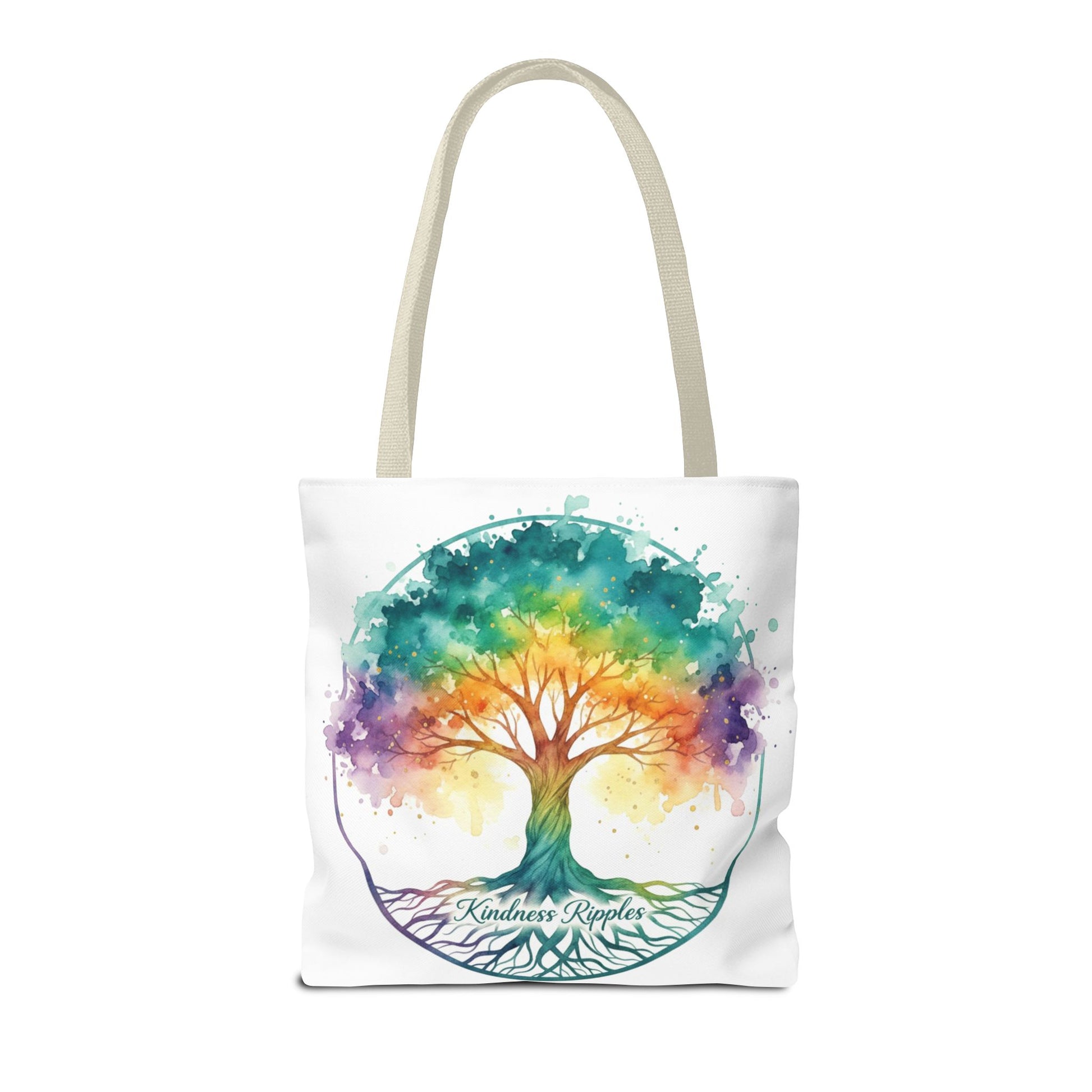 Discover the perfect blend of style and functionality with this vibrant tote bag. Adorned with a stunning watercolor tree design symbolizing kindness and positivity, this tote radiates warmth and uplifting vibes. It's ideal for everyday adventures, whether you're heading to the market, beach, or a casual day out with friends. Perfect for eco-conscious individuals and those who appreciate artistry in their accessories. This stylish tote makes a wonderful gift for birthdays, holidays, or just because!