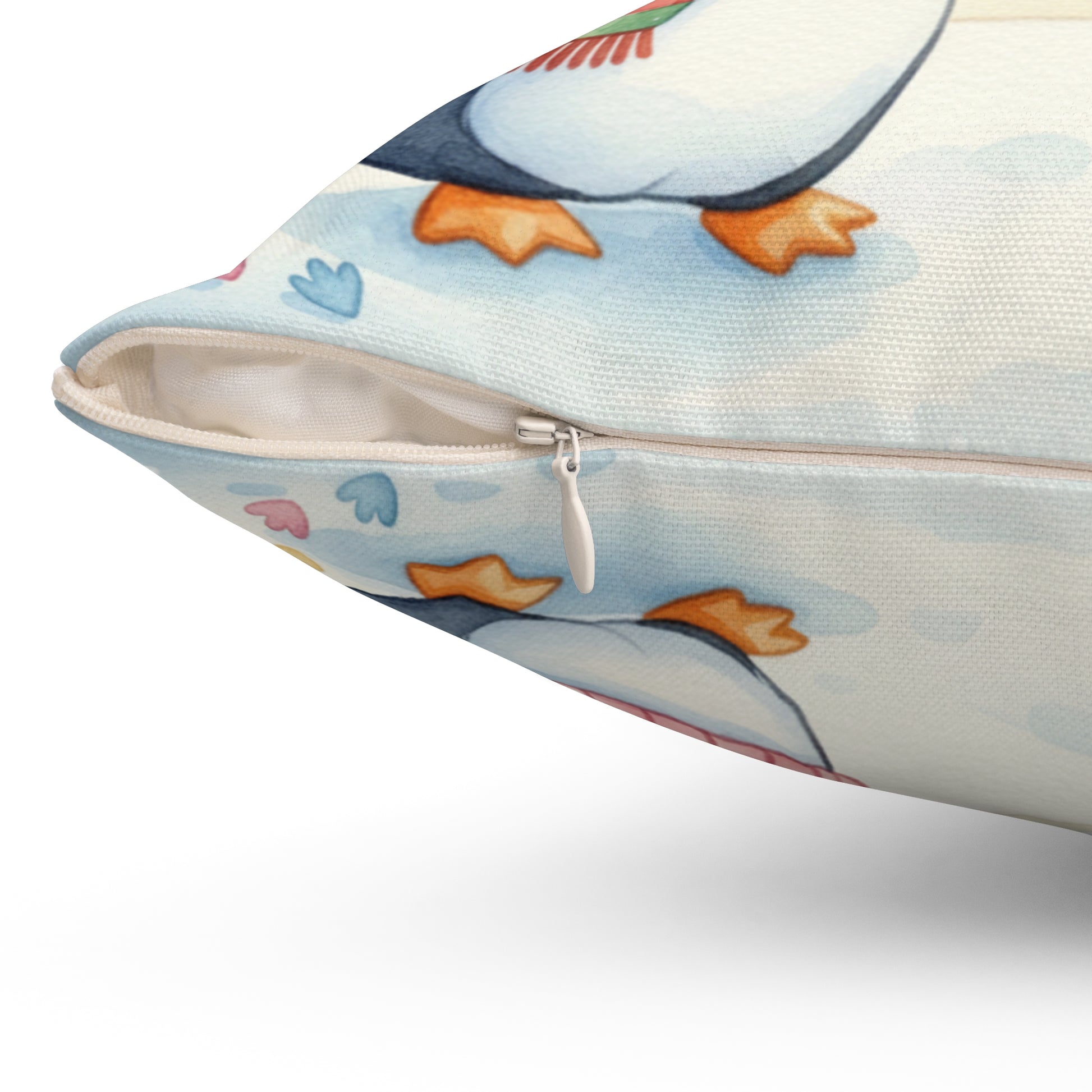 Bring the adorable charm of penguins into your home with this square pillow featuring the cutest penguin couple, T and J. Perfect for adding a touch of whimsy to your living room or bedroom decor. Ideal for penguin lovers and those who enjoy cute and fun designs. Relevant for Valentine's Day, anniversaries, or any occasion to celebrate love.