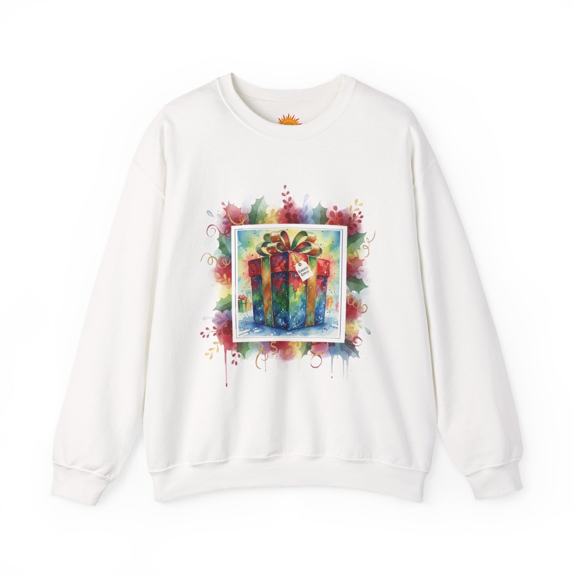 Festive Gift Crewneck Sweatshirt with Colorful Bow Design