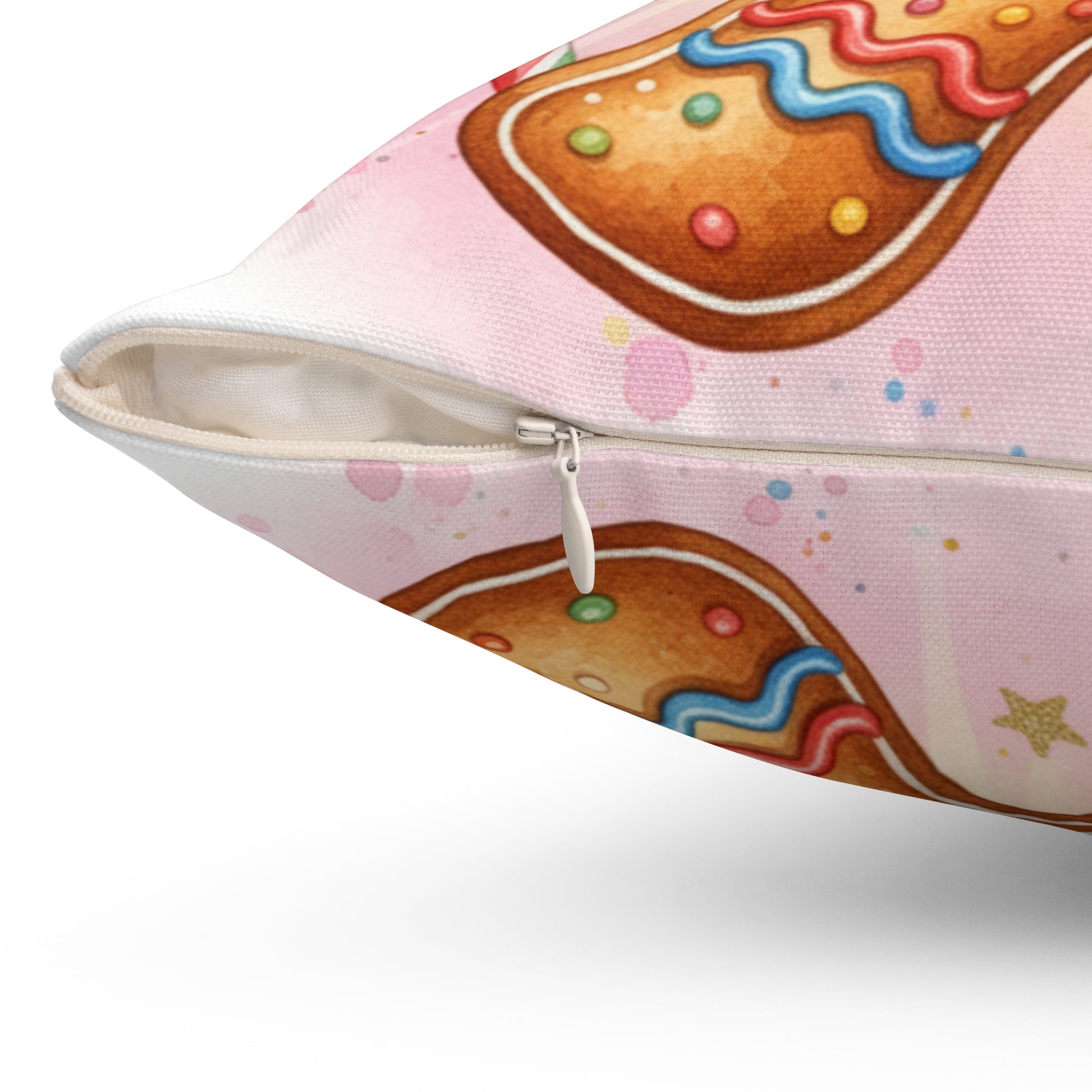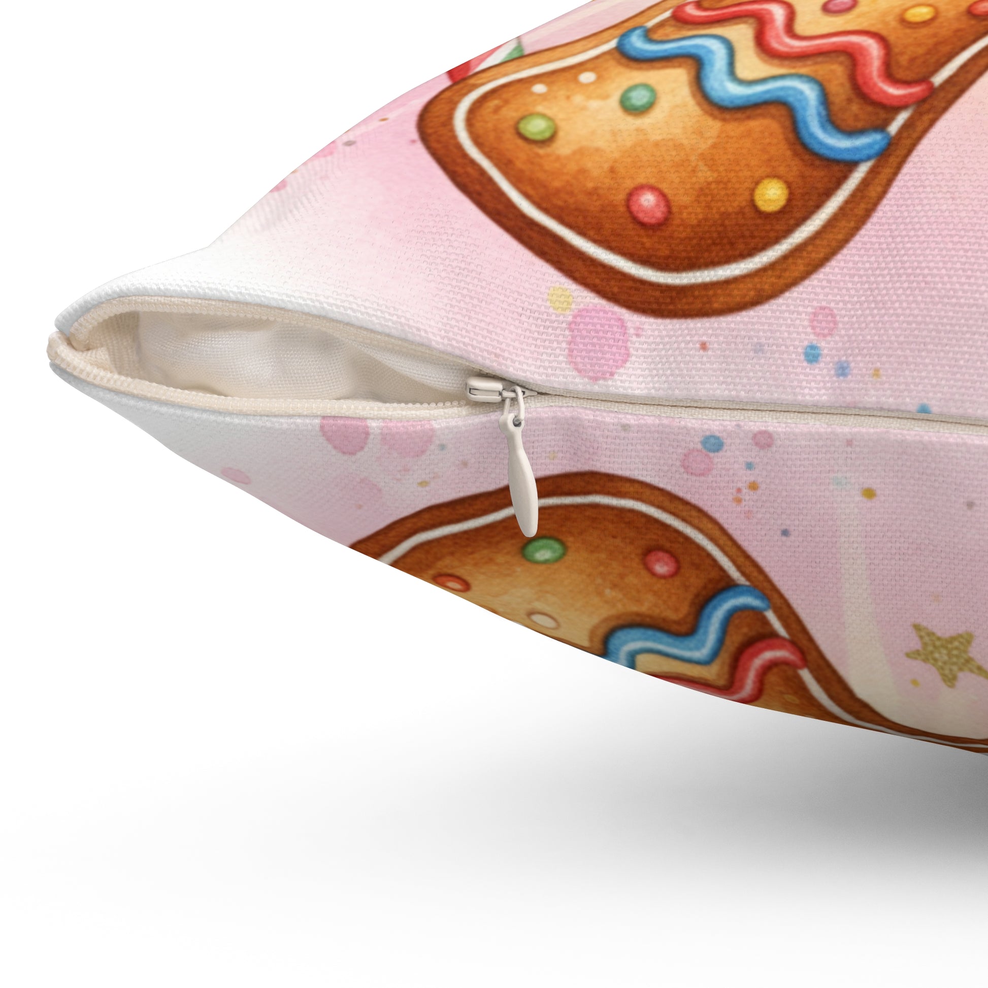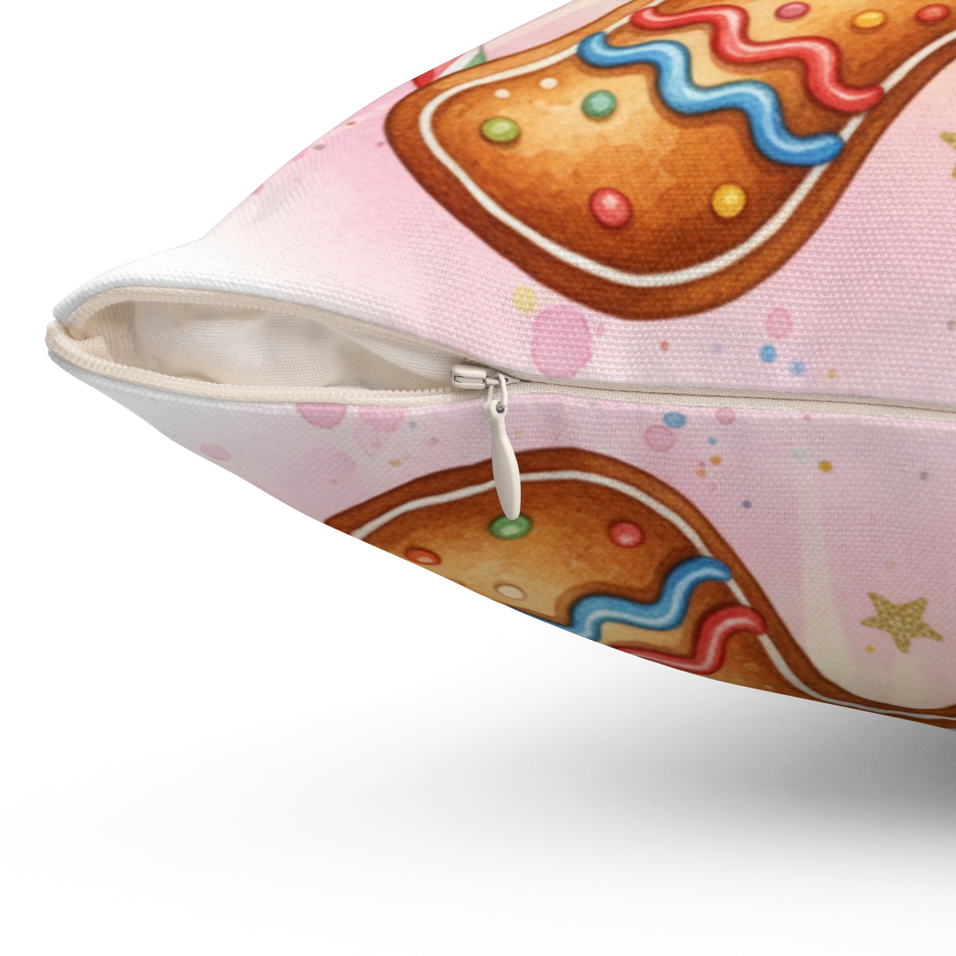 Add a touch of whimsy to your home decor with this delightful square pillow. Featuring a cheerful gingerbread design, it instantly brings a festive vibe that can brighten up any space. Perfect for cozy winter evenings, this pillow invites feelings of warmth and nostalgia, making it an ideal addition for holiday gatherings and seasonal celebrations. Targeted towards families, friends, and holiday enthusiasts, this pillow is perfect for Christmas, winter festivities, or seasonal gifting. Its playful design also complements children's rooms or festive living areas, bringing smiles all around.