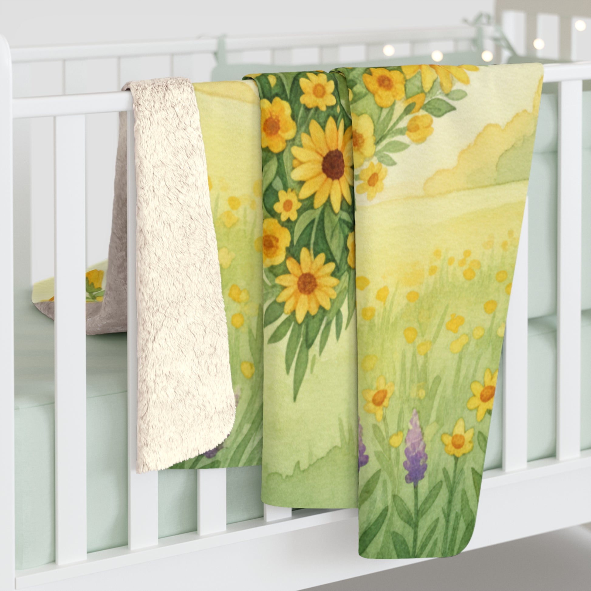 Heart of Sunshine Field of Flowers Sherpa Blanket