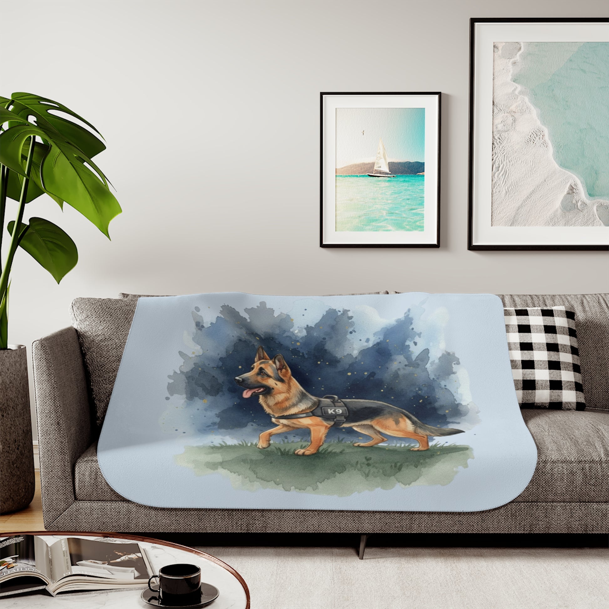 K9 German Shepherd Sherpa Blanket — Cozy Two-Tone Dog Lover Throw