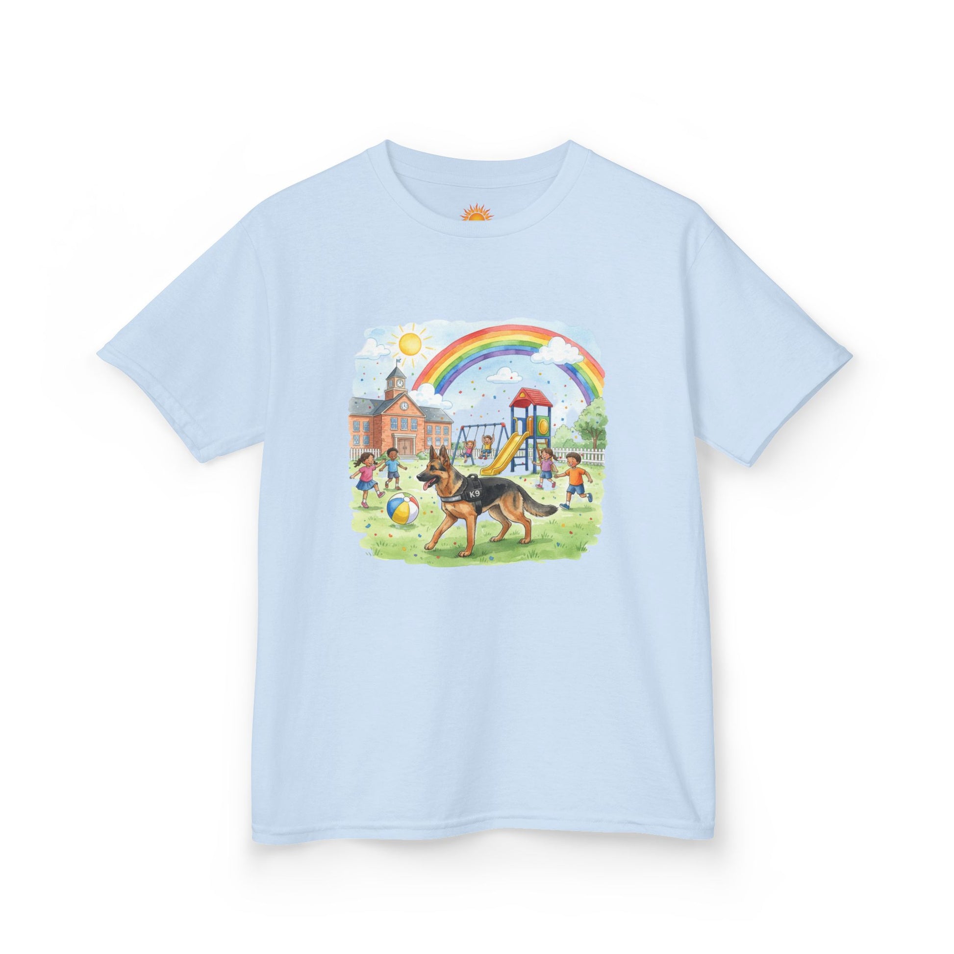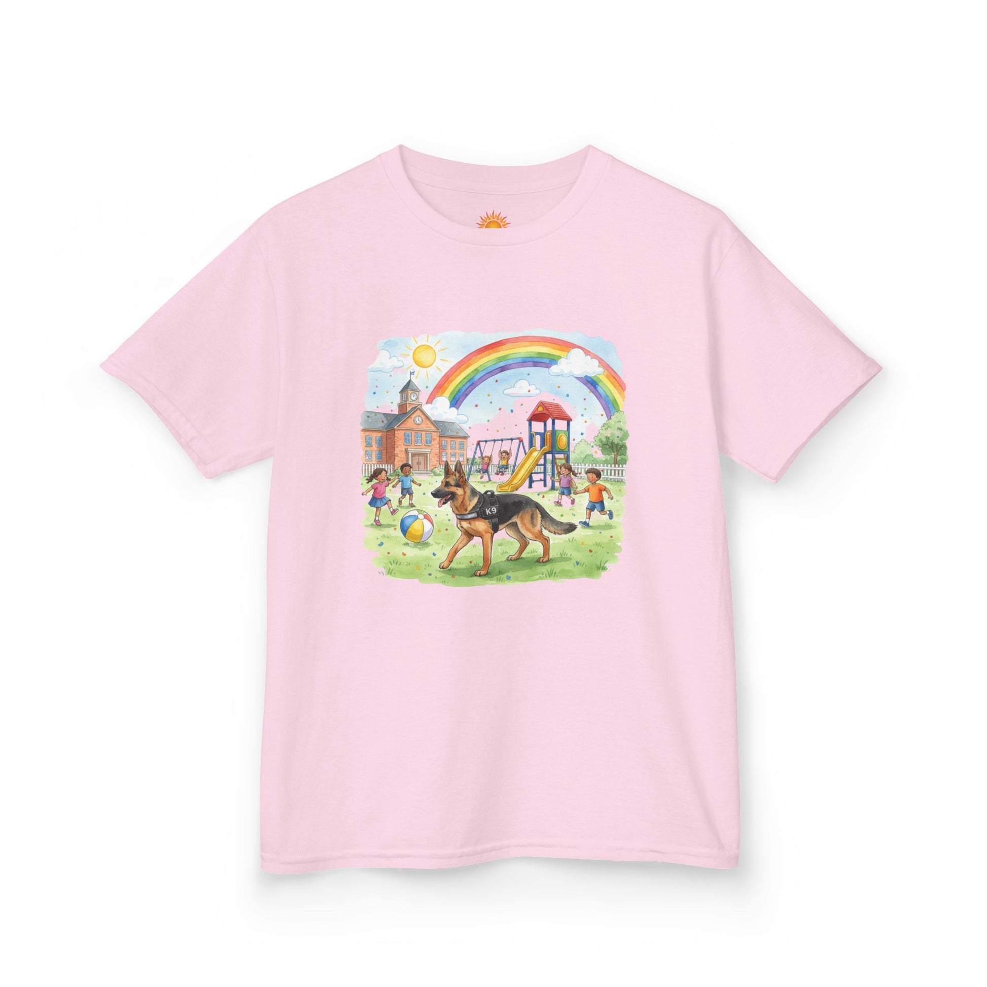 Kids T-Shirt — Playful Park Scene with Rainbow, Playground & Dog
