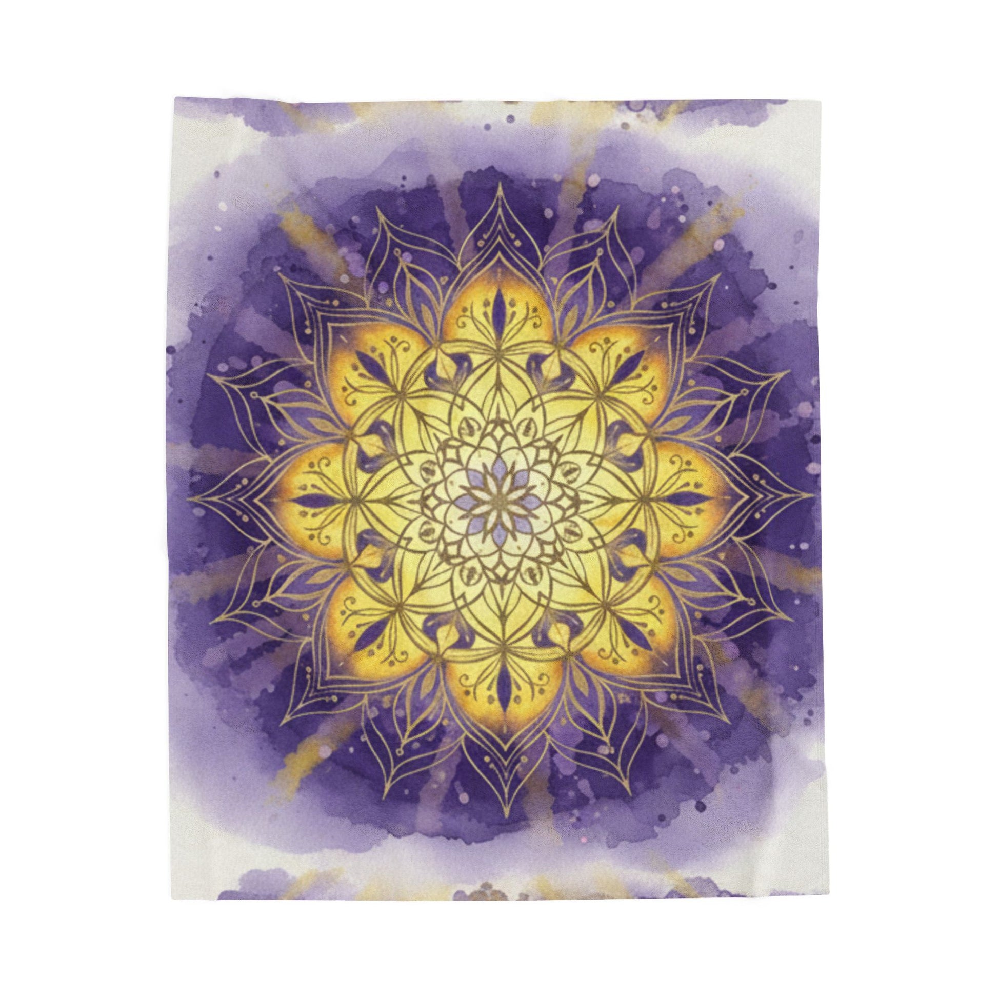 Mandala Velveteen Plush Blanket - Cozy Decorative Throw for Relaxation and Gifts, Purple and Gold, Peaceful, Kindness, Calm