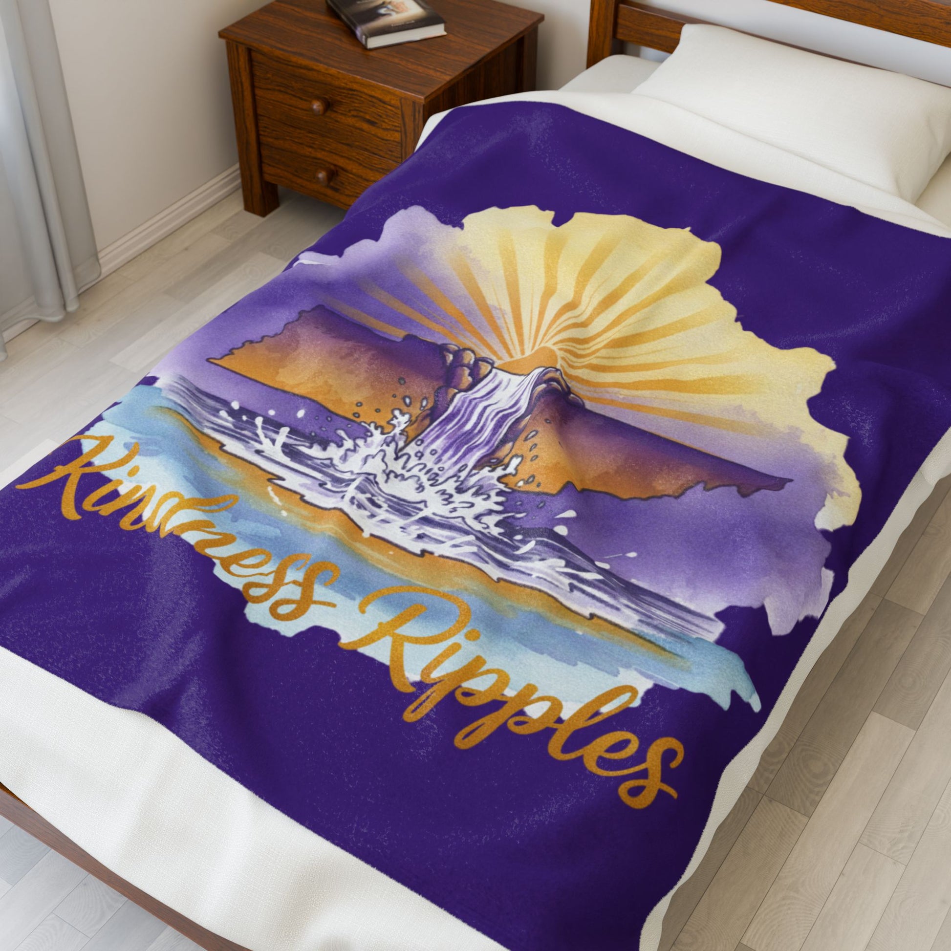 Purple Kindness Ripples Velveteen Plush Blanket - Cozy Statement Throw for Comfort & Warmth, Cookeville, TN, Waterfall Capital of the World