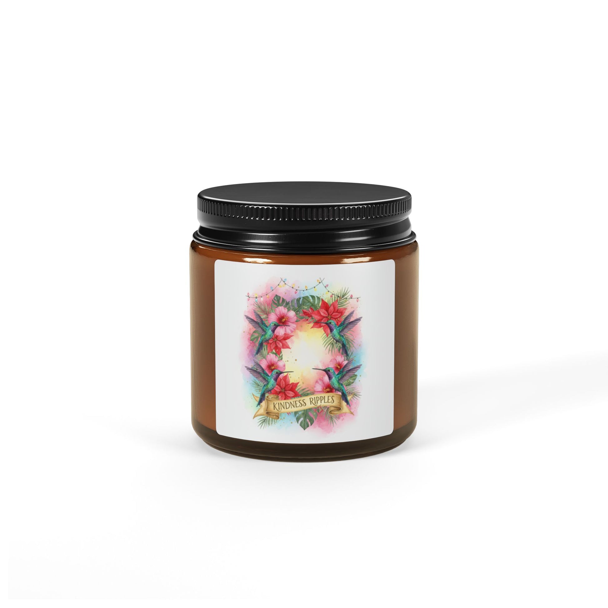 Scented Soy Candle - Amber Jar - Holiday Hummingbirds