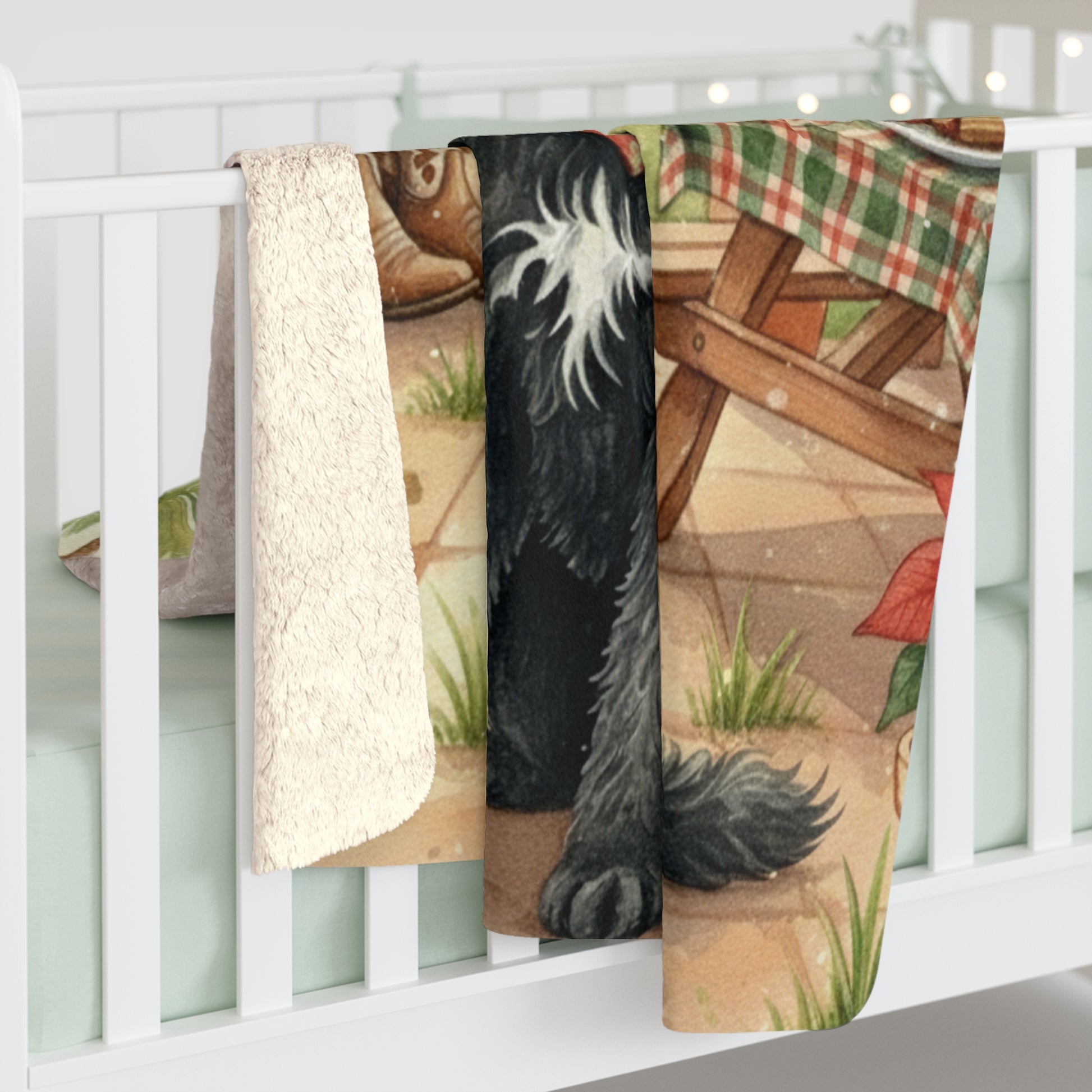 A cosy and fun-loving Sherpa Fleece Blanket featuring a Doodle design. Perfect for snuggling up on the couch or adding a playful touch to your bedroom decor. Ideal for adults looking for a comfortable and stylish throw blanket. Great for gifting during birthdays, holidays, or special occasions.