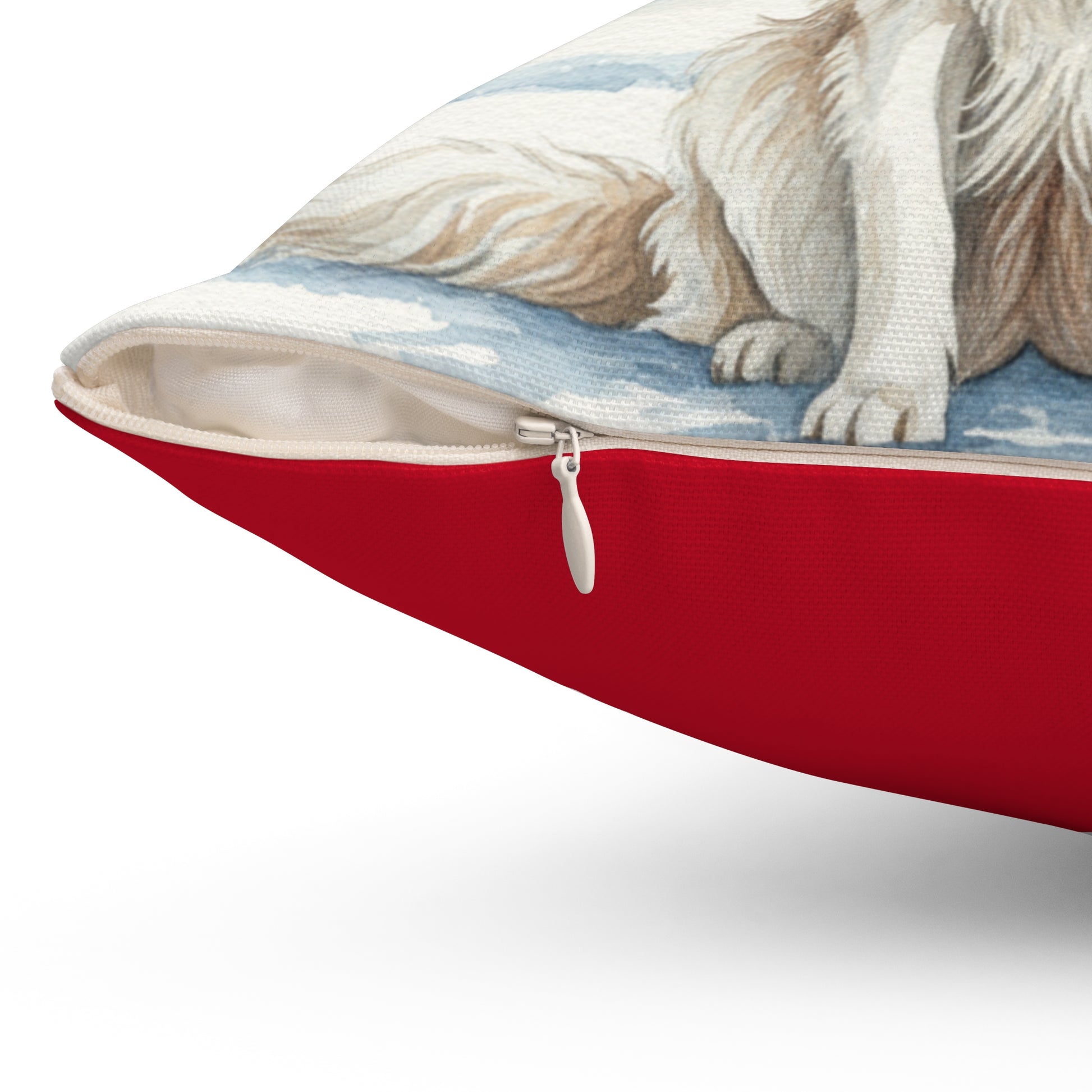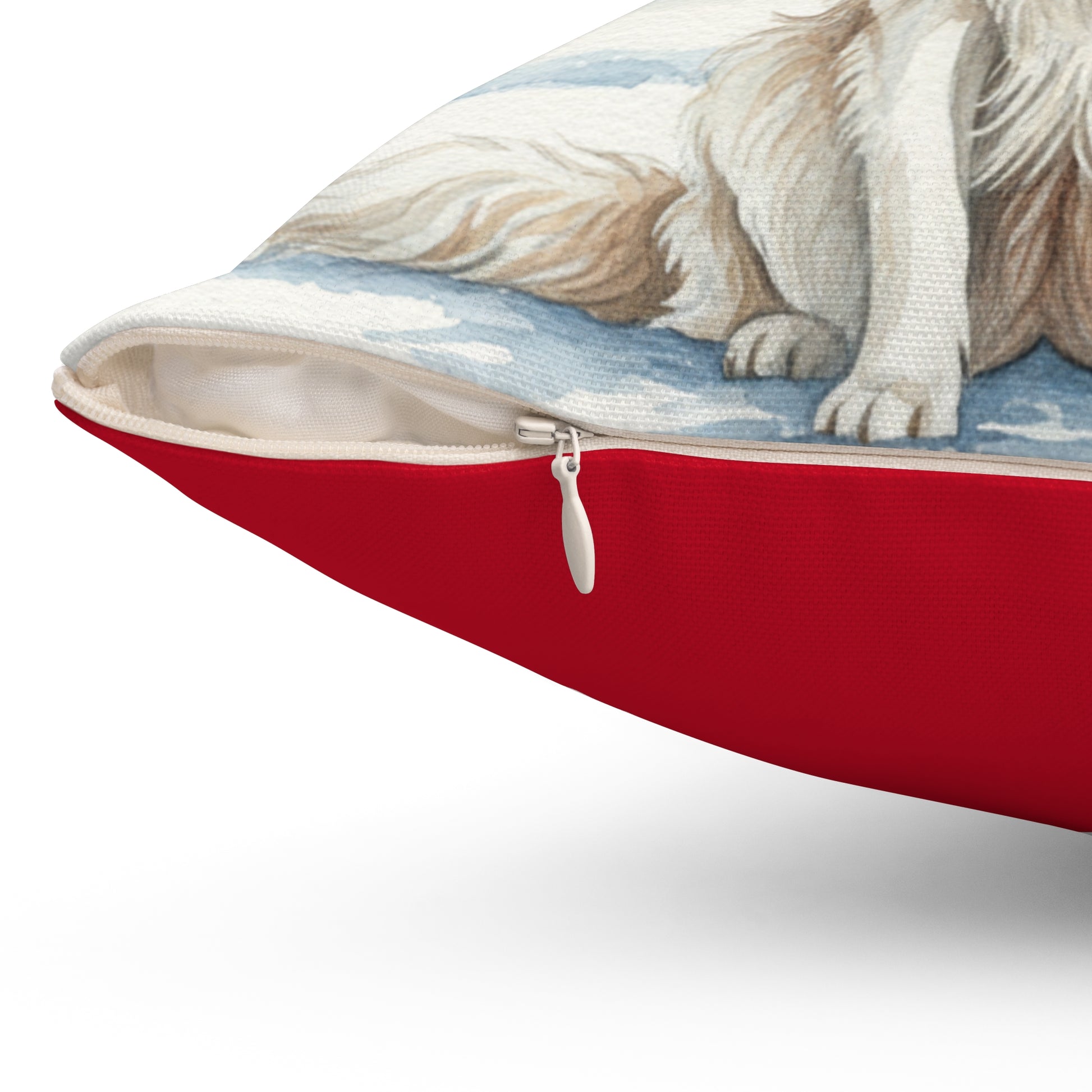 Bring warmth, whimsy, and a wagging tail to your cozy corner with this double-sided spun polyester pillow. The front showcases a sweet great pyrenees in the soft snowfall; an image that brings joy and a smile. The back is a rich, solid red that grounds the scene and complements holiday décor. The cover holds its shape and resists wrinkles, and the recycled polyester insert ships compressed so you can fluff it into a plump, full cushion when it arrives. Tuck it on a couch or an armchair to invite quiet smiles, gentle nostalgia, and a bit of seasonal cheer into everyday moments.