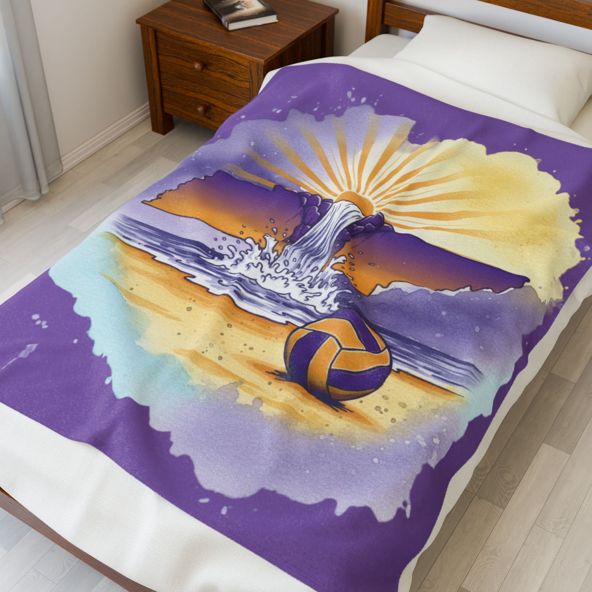 Tennessee Sunset Beach Volleyball Velveteen Plush Blanket, Cookeville, TN, Waterfall Capital of the World, Beach Volleyball