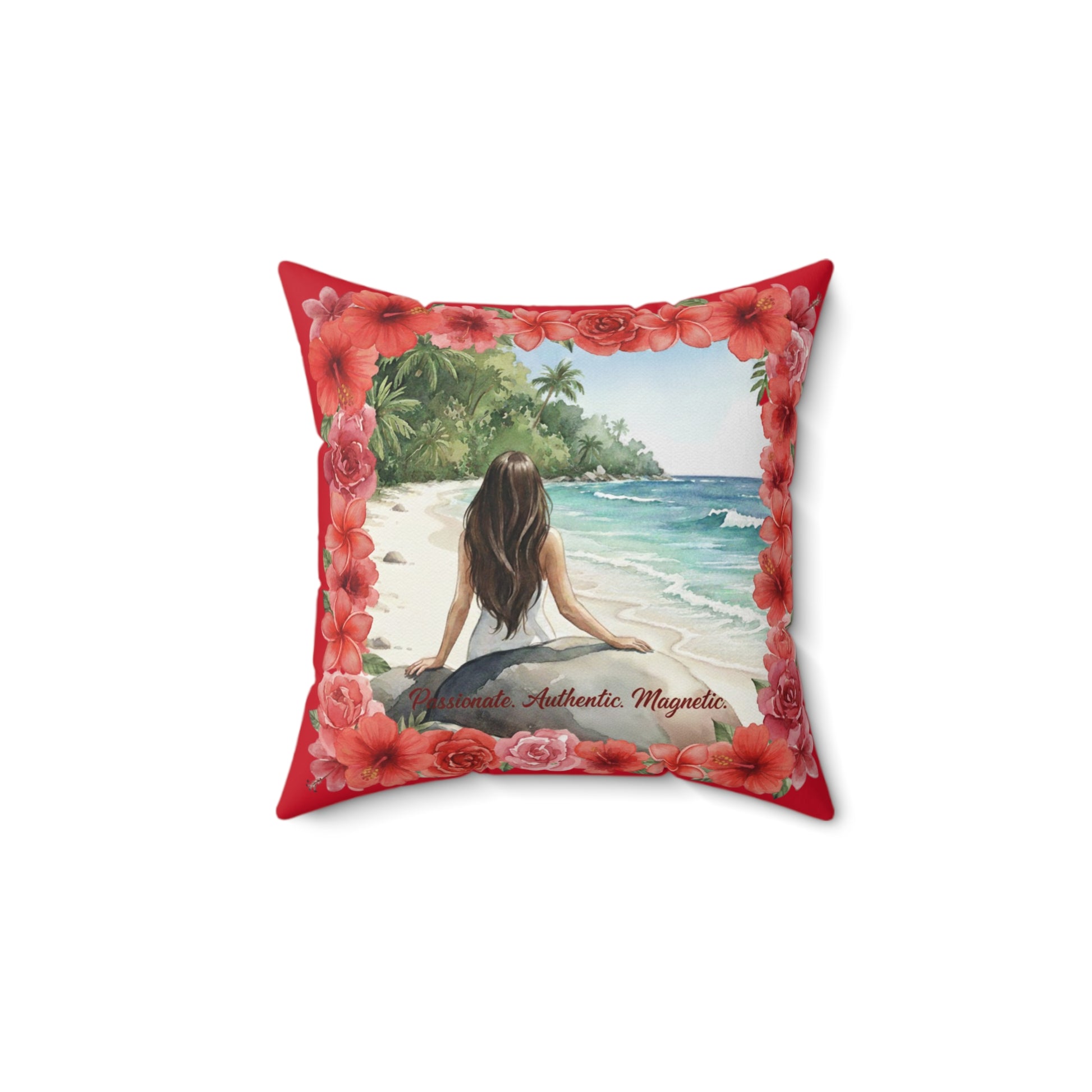 Tropical Floral Pillow - Beach Vibes Decor with Inspirational Text - Pays Homage to Cristina, a passionate, authentic, and magnetic woman. Do you have a Cristina in your life?