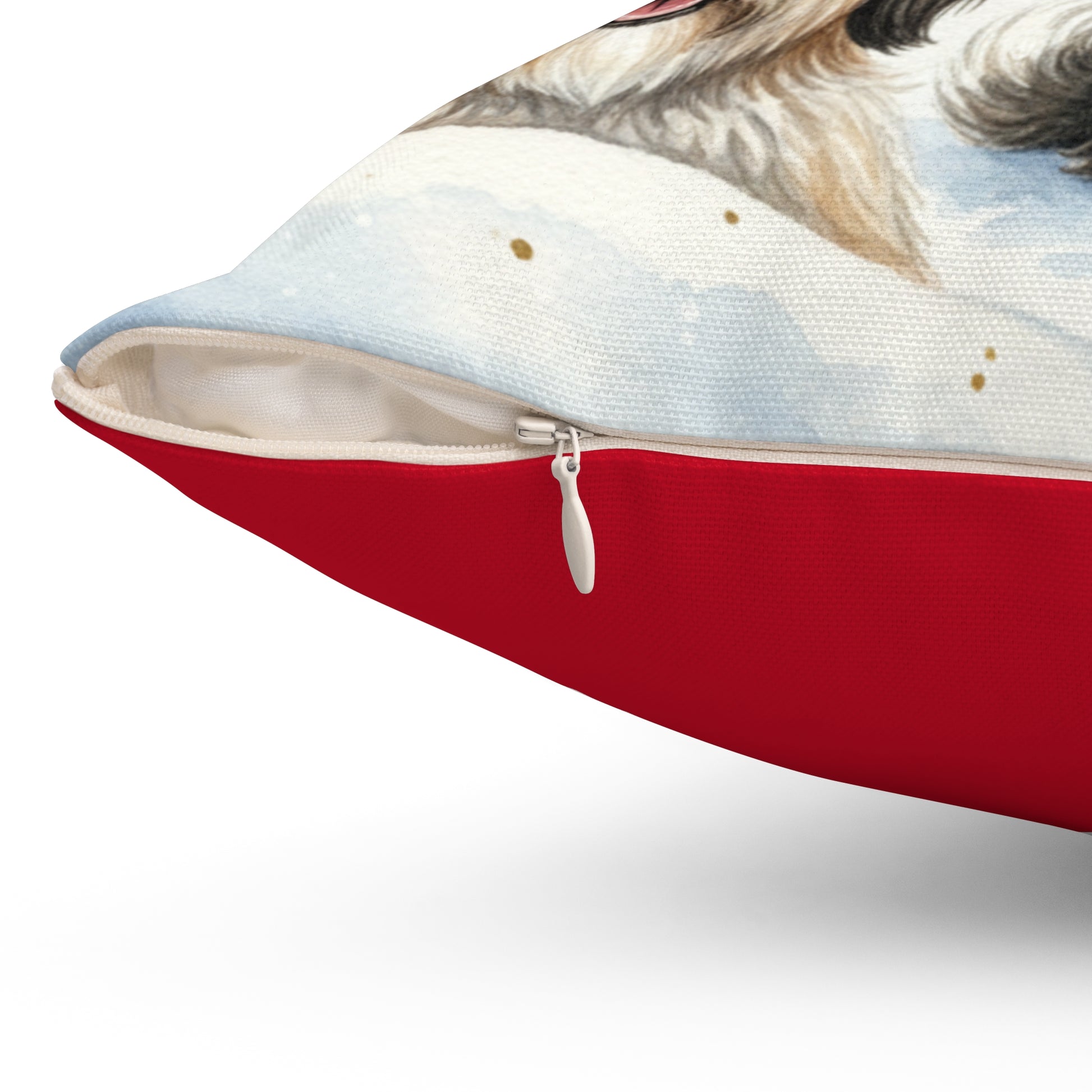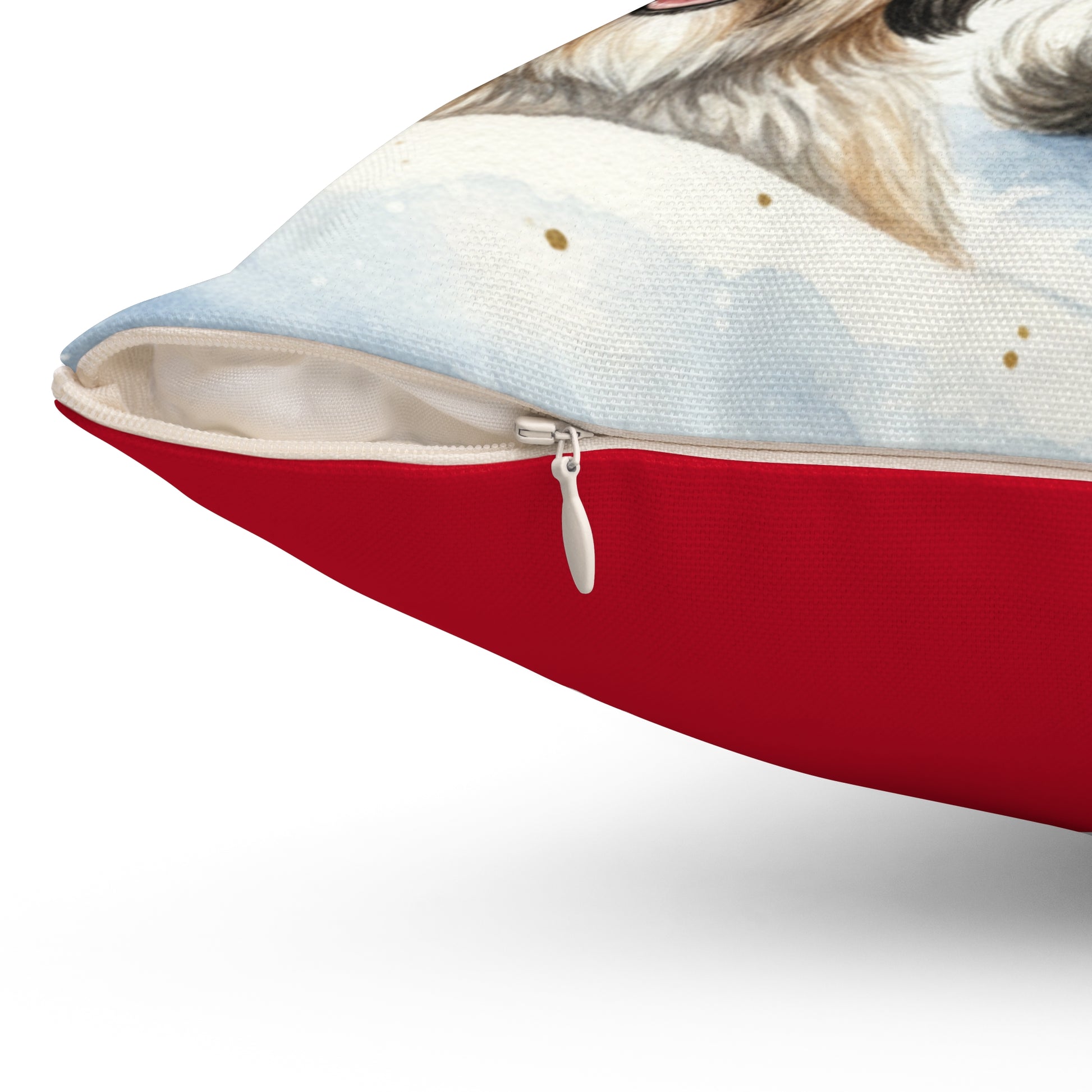 Bring warmth, whimsy, and a wagging tail to your cozy corner with this double-sided spun polyester pillow. The front showcases sweet Tibetan Terriers in the soft snowfall; an image that brings joy and a smile. The back is a rich, solid red that grounds the scene and complements holiday décor. The cover holds its shape and resists wrinkles, and the recycled polyester insert ships compressed so you can fluff it into a plump, full cushion when it arrives. Tuck it on a couch or an armchair to invite quiet smiles, gentle nostalgia, and a bit of seasonal cheer into everyday moments.