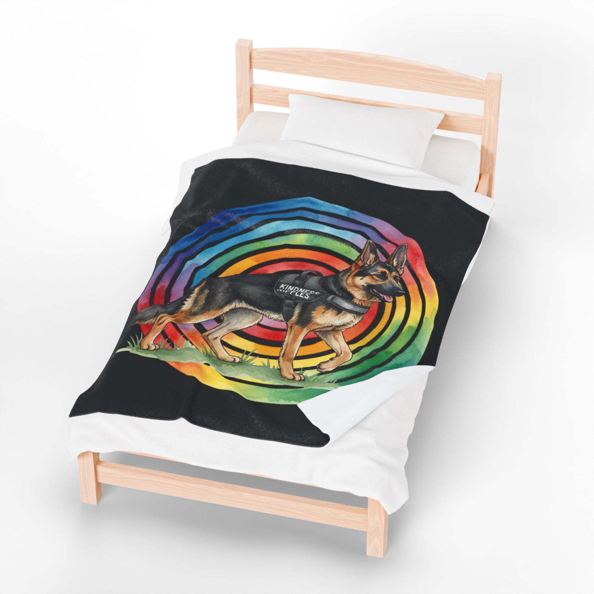 Velveteen Plush Blanket — German Shepherd "Kindness Ripples" Rainbow Throw