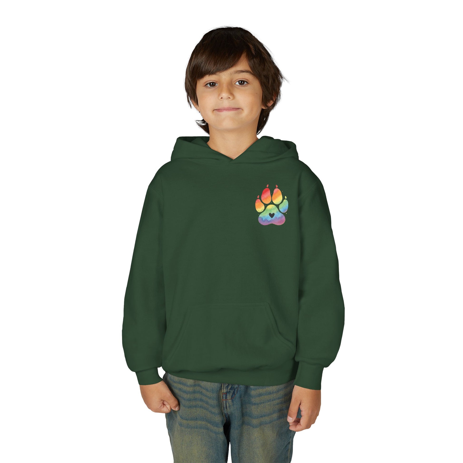 Youth Hoodie — Rainbow Paw & German Shepherd Graphic - Kindness Ripples